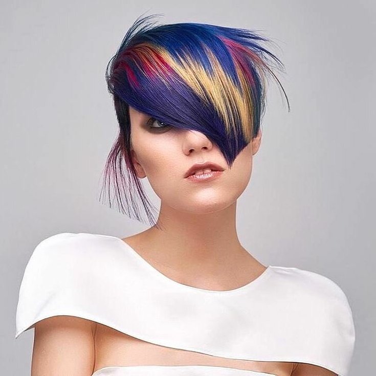 Можно сочетать несколько цветов в этой стрижке (например, на прядях волос). Укладывать такую стрижку можно брашингом, или обычной щеткой.