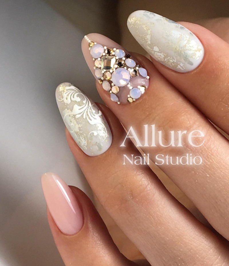 Уверены в том, что кристаллы и стразы уже вышли из моды? Вовсе нет, варианты дизайна маникюра на весну и лето вновь делают блеск популярным. Стразы могут создавать орнамент или покрывать ногтевую пластину целиком.