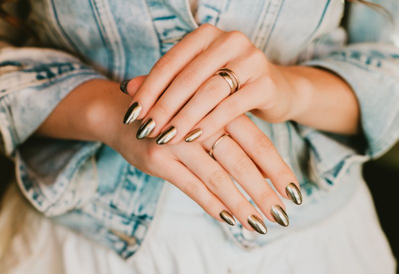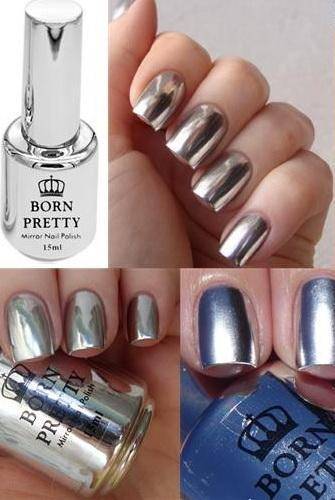 Самые модные цвета маникюра 2021 года могут иметь металлизированную поверхность.