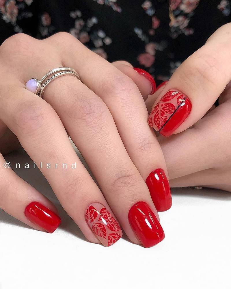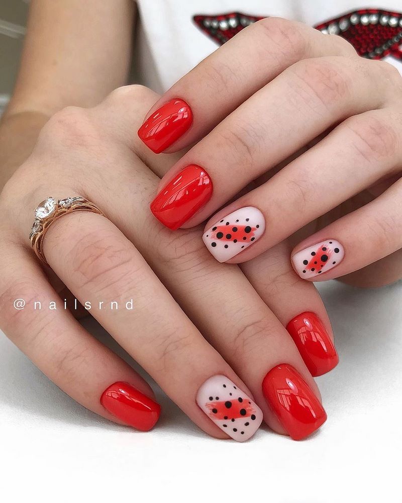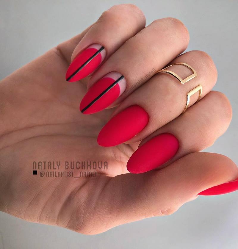 Если вы идете на маникюр за изменениями, выбирайте цвет весны и лета – безупречный красный. Алый или оттенка спелого яблока, он требует безупречного состояния ногтей. Но хорошо смотрится на любой длине и форме пластины, в глянцевом и матовом варианте.