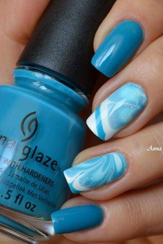 Цвет, который заставит ваши ногти сочетаться с ясной голубизной летнего неба, по которому изредка пробегают белые облачка. Этим летом весьма популярны приглушенные тона голубого, пастельные и матовые.