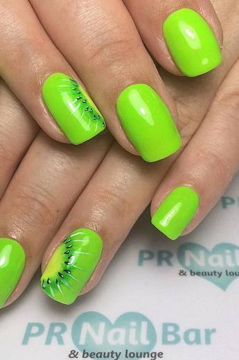 Успокаивающая аура зеленого цвета всегда приходится, кстати. Сочная зелен на ногтях и на летней траве, листве деревьев, будет отлично гармонировать. Можно выбрать мягкий, салатовый вариант.