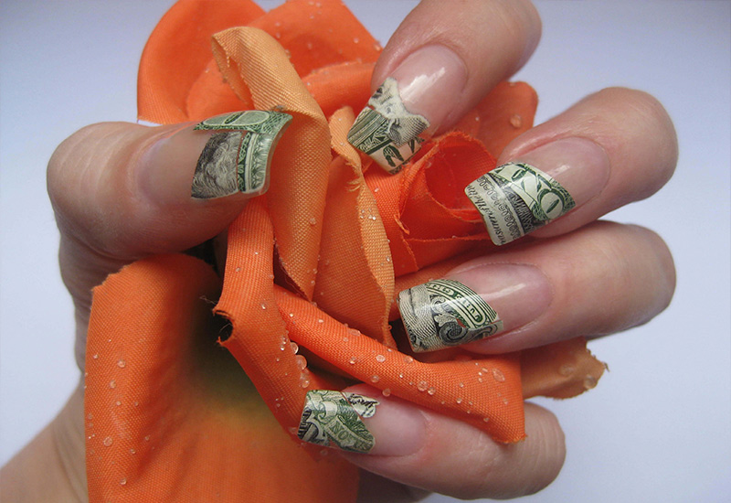 Денежные мотивы в дизайне – главный тренд 2024 года. Вы можете выбрать принт со знаком доллара или евро, изобразить зеленую купюру или китайскую монетку на ногтях. А для поклонниц мультипликации отличным выбором станет лепрекон с горшком золота или ныряющий в кучу денег Скрудж МакДак.