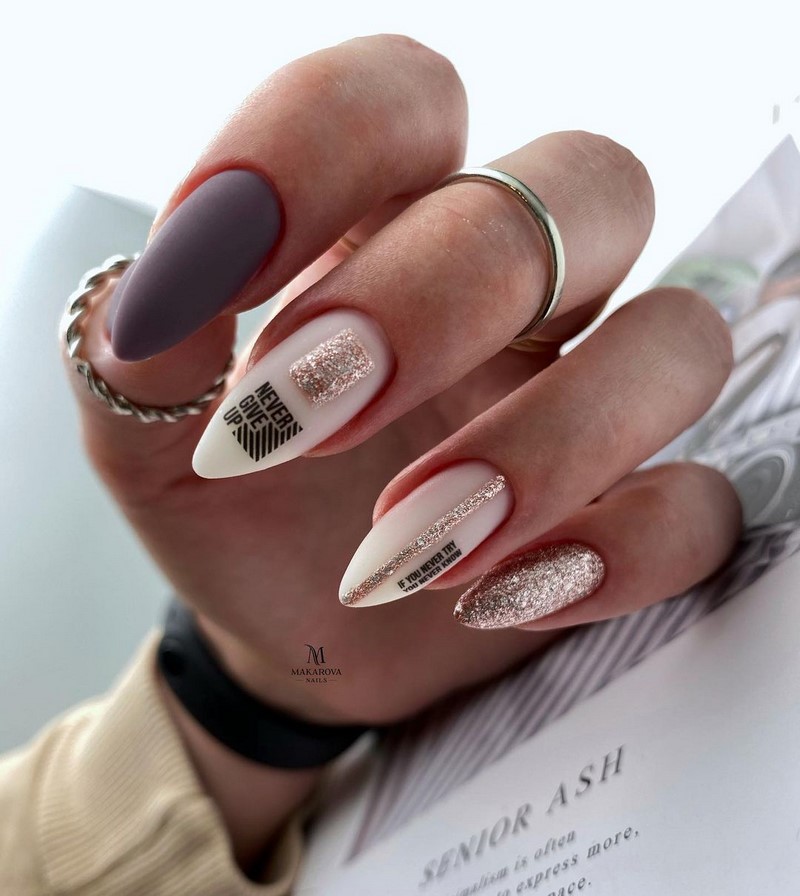 Абстракция — размашистость и хаотичность делают абстракцию неподражаемой и в каком-то смысле уникальной, ведь каждый мастер привносит что-то своё. Вариации рисунков могут быть разнообразными – точки, линии, брызги, текстуры и многое другое. Матовые дизайны – беспроигрышны и универсальны. Достаточно добавить парочку ярких акцентов, чтобы маникюр преобразился и заиграл новыми красками.