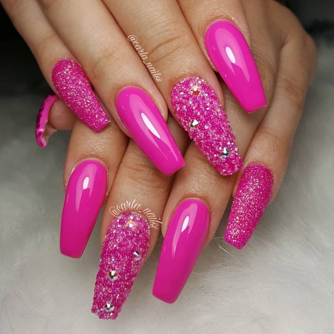 Уверены в том, что кристаллы и стразы уже вышли из моды? Вовсе нет, варианты дизайна маникюра на весну и лето вновь делают блеск популярным. Стразы могут создавать орнамент или покрывать ногтевую пластину целиком.