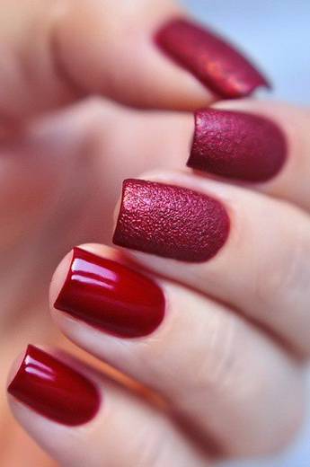 Если вам интересны новинки дизайна ногтей на весну и лето, обратите внимание на матовый маникюр. Он смотрится более приглушенно, прекрасно раскрывает нюансы глубоких цветов