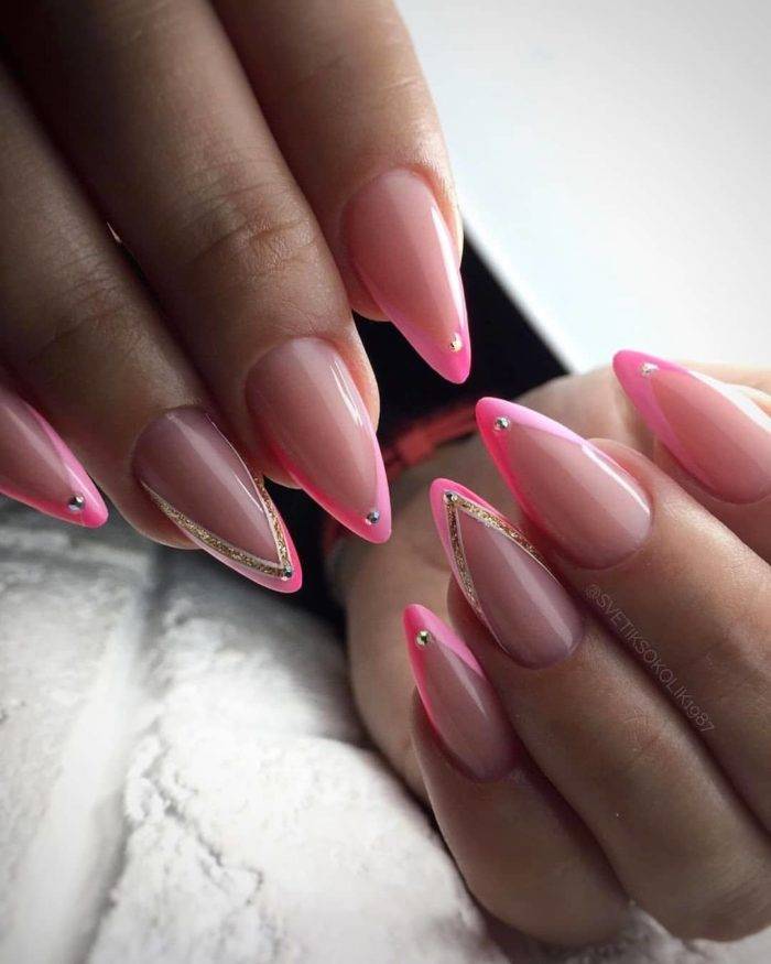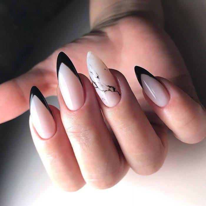 Тренды френча на миндалевидную форму ногтей в 2022 году
