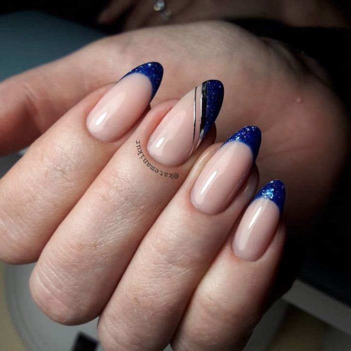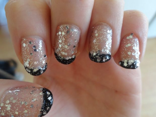 Существует множество интересных идей френча для коротких ногтей. С помощью блестящего дизайна можно добавить немного дополнительного мерцания в жизнь. Френч включает нейтральный фон, темные кончики и блеск, который распределяется неравномерно.