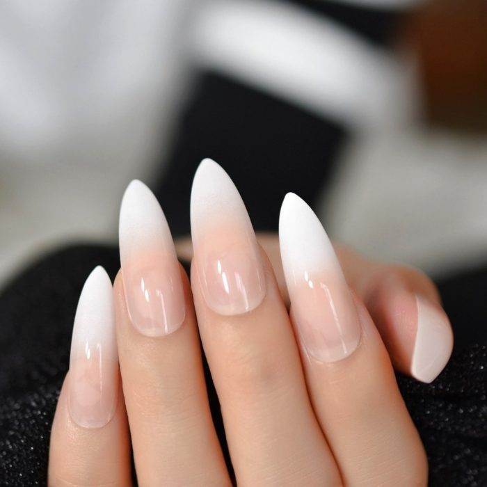 Ногти с особенно красивым плавным цветовым градиентом привлекают внимание и смотрятся очень сдержанно и женственно. Если вы хотите добиться эффекта омбре за счет сочетания натурального цвета и белого лака для ногтей, у вас получится потрясающий французский вид омбре