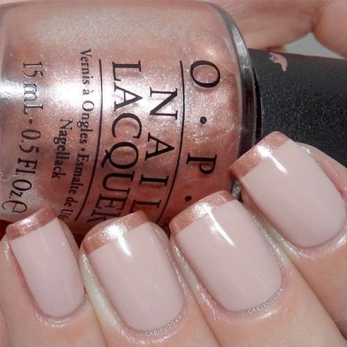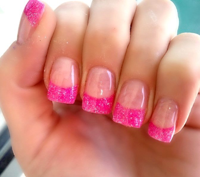 В блестящем френче допускается использование любого цвета. Чрезвычайно популярно применение розовых, серебряных и золотистых блёсток.