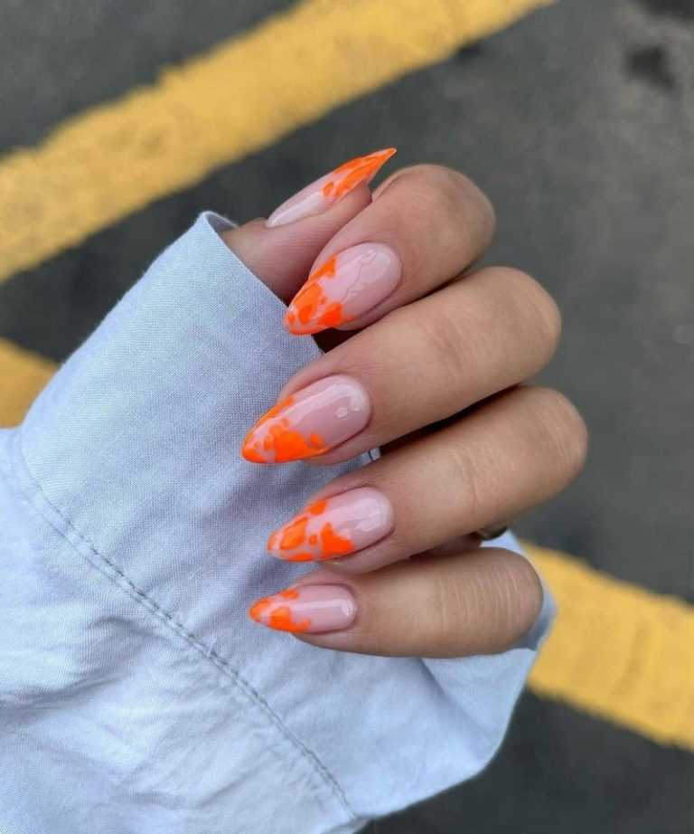 Самый яркий френч можно создать при помощи оранжевого цвета. Он ассоциируется с позитивом и хорошим настроением. Это один из лучших вариантов для летнего сезона. С такими ноготками любая красотка будет выглядеть на миллион долларов.