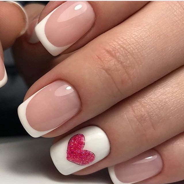 Романтика у девушек в крови, даже у тех, кто утверждает ,что им чуждо все розово-ванильное. Особенно весной и летом, да и в феврале, можно увидеть много вариантов необычного, красивого и очень простого в исполнении френча по форме напоминающего сердце. Выполняется он в нежных нюдовых тонах или напротив делается нарочито ярким (алым или бордовым). Смотрится этот дизайн и стильно, и романтично, и свежо.