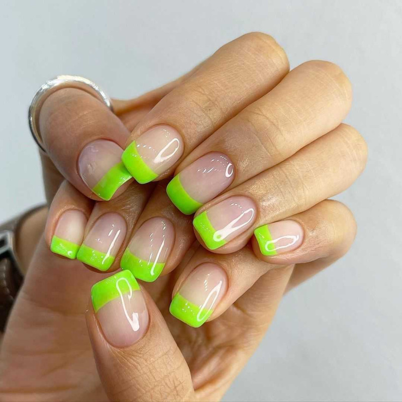 Этот вариант подойдет всем, кто любит яркие, цепляющие внимание прохожих ногти. Новый 2022 год преподносит большое разнообразие вариаций цветного френча. Например: