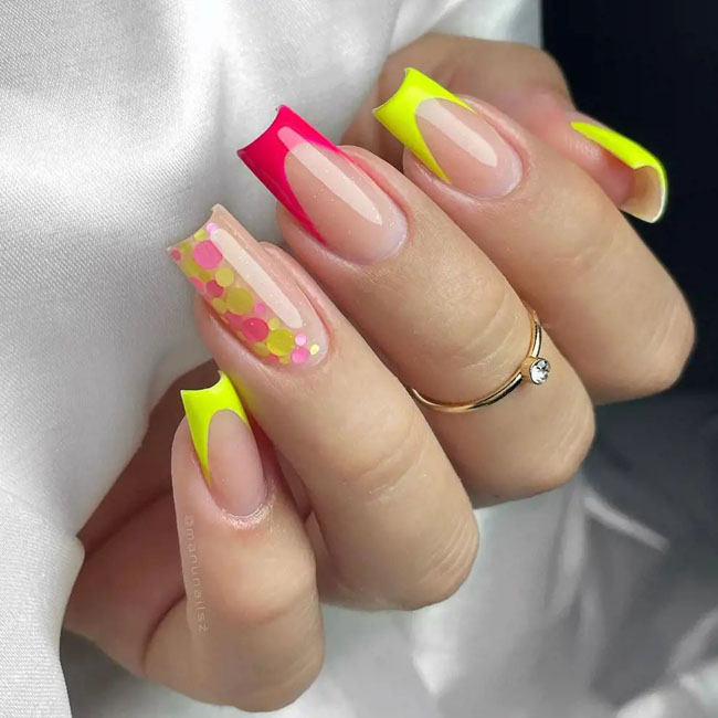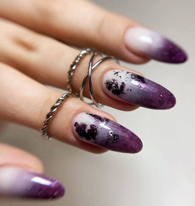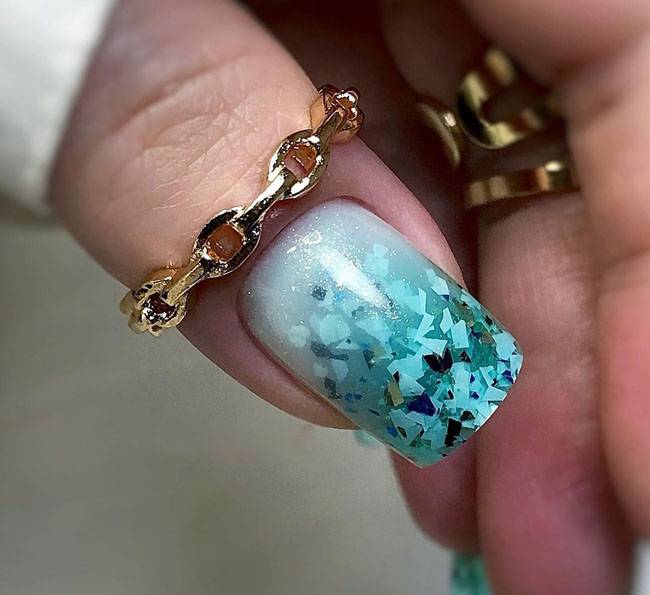 Это может быть сочное летнее омбре, дополненного актуальным блестящим элементом.