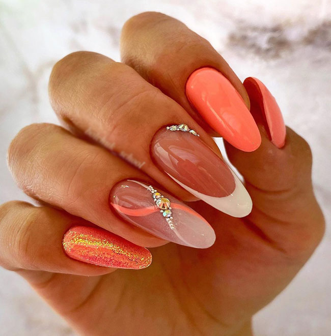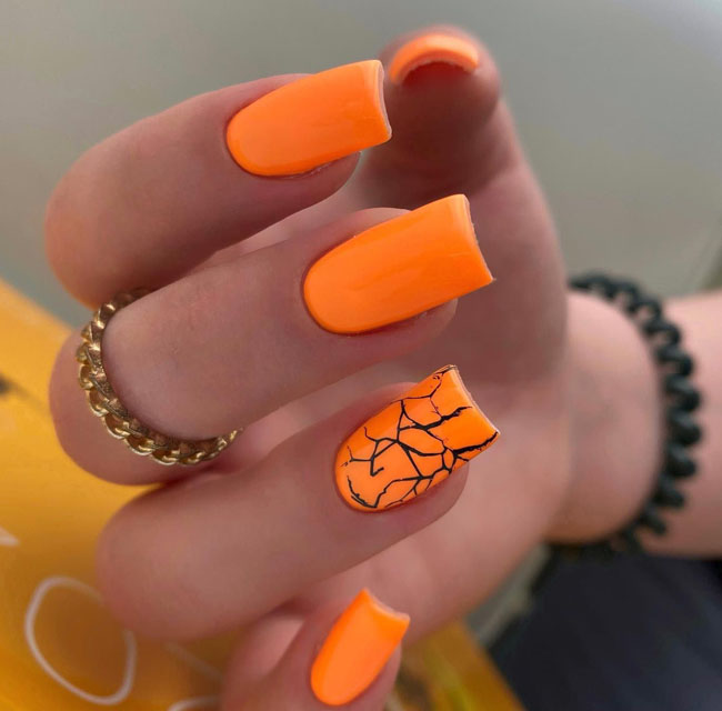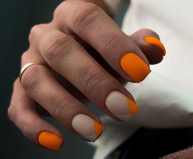 - Оранжевый — эффектный оттенок, для любителей яркого маникюра.