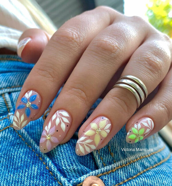 Буквально каждый сезон мастера моды используют флористику в своих коллекциях. Данный вид орнамента просто не должен покидать мир нейл-арта, поэтому в летний сезон 2024 года прекрасные модницы с уверенностью могут исполнять на своих ногтевых пластинах бутоны любимых цветов. Даже самые коротенькие ноготки могут украшаться пусть даже маленькими, но картинками в виде веточек и букетов.