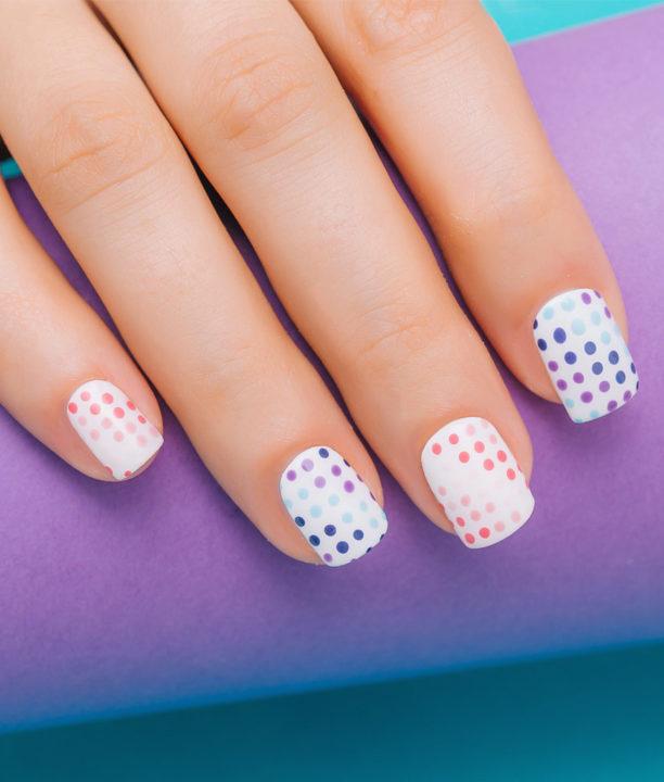 Маникюр в горошек, с камифубуками, наклейками-кружочки, икорки и круглые стразы — это модный и стильный маникюр лета 2023 года. Маникюр с круглым декором можно сделать очень ярким, разноцветным, который прекрасно комбинируется с разной одеждой.