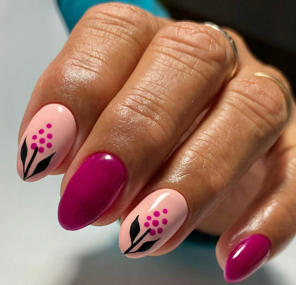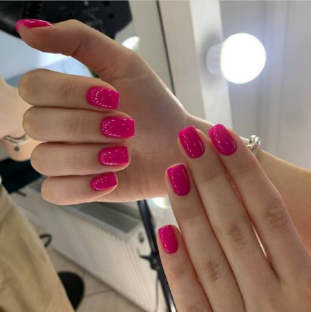 Яркий дизайн ноготков в модном оттенке фуксия.