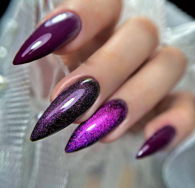 На замену мелкому глиттеру приходит металлический блеск. Вы можете получить металлический маникюр во множестве различных цветов и стилей: