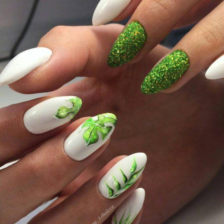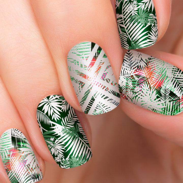Тропические варианты оформления. Листья и пальмы, экзотические птицы и подобные предложения будут отлично смотреться в летнем оформлении маникюра