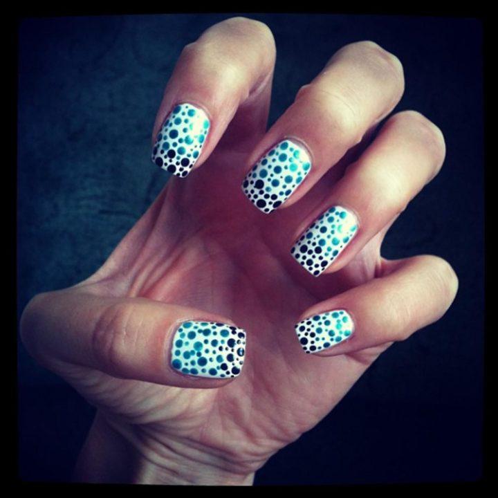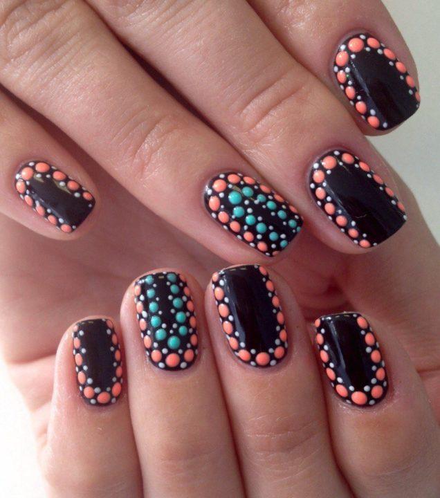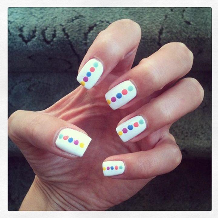 Кружочки можно укладывать по всей площади ногтевой пластине или по ее краю. В вашем распоряжении любой дизайн, который сможет придумать ваша фантазия. Подобный маникюр очень легко выполнить в домашних условиях, что позволит вам сэкономить лишние деньги.