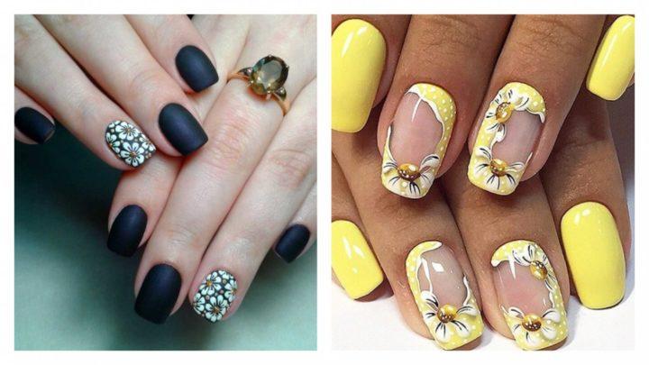 Особенно летом 2022 будут ценится простые одуванчики. Они выполняются в едином или множественном числе, где каждый цветок сможет украшать свою часть ноготка. Больше всего пользуется популярностью черно-белый рисунок на пастельном тоне.