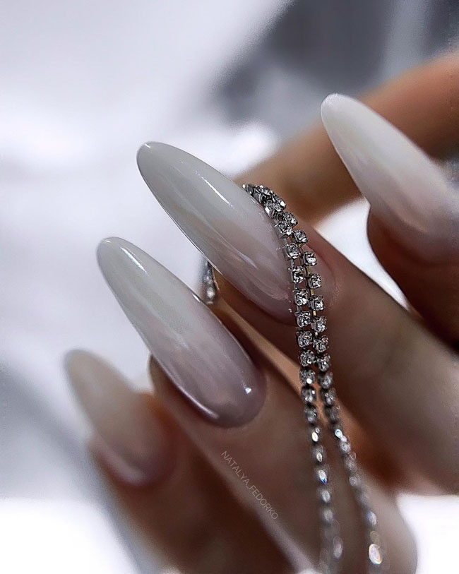 Для самых нежных и сдержанных, в тренде останется полупрозрачный молочный. Молочный входит в модные тренды нейл арта.