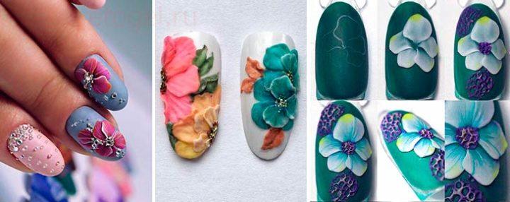 Из техник вперед выступает акриловая пудра и фольга, с помощью которых очень легко сделать разнообразный вариант дизайна. Фольга располагается на ногте по желанию клиента, либо по творческой задумке, что по итогу дает уникальный дизайн со сложными элементами при создании. Акриловая пудра подойдет для акцентирования внимания на одном ногте, либо для 3D создания цветов.