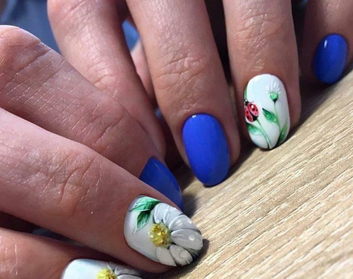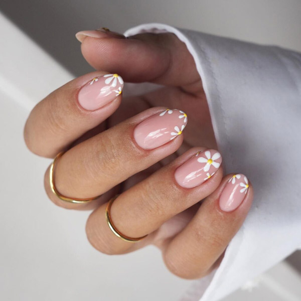 Для любительниц флористического узора лето 2023 года предлагает украшать свои ноготки ромашками. Ромашки можно рисовать на ногтях совершенно по-разному, благо вариаций их исполнения большое количество. Чаще всего ромашкой украшают только один ноготок, а другие покрывают однотонным лаком или делают классический френч.