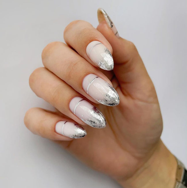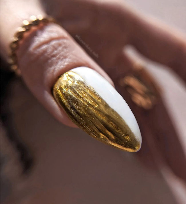 Металлические цвета 2000-х годов также вернулись с более новыми формулами, такими как зеркальные ногти — зеркальный эффект, френч золотой и серебренный.