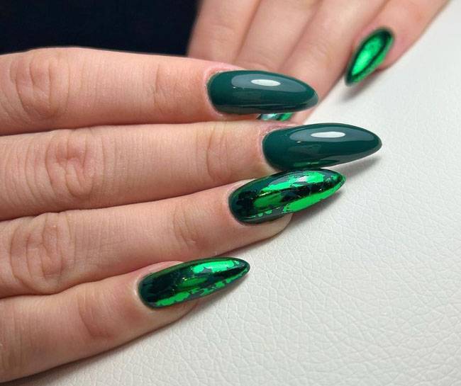 Лето 2022 — это период зеленого цвета. Больше всего здесь будет ценится изумрудный, который отличается богатством и насыщенностью цвета. Это лучший вариант маникюра, который сможет подойти к белой и темной коже.