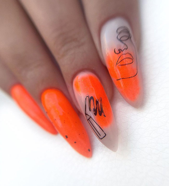 - Оранжевый — эффектный оттенок, для любителей яркого маникюра.