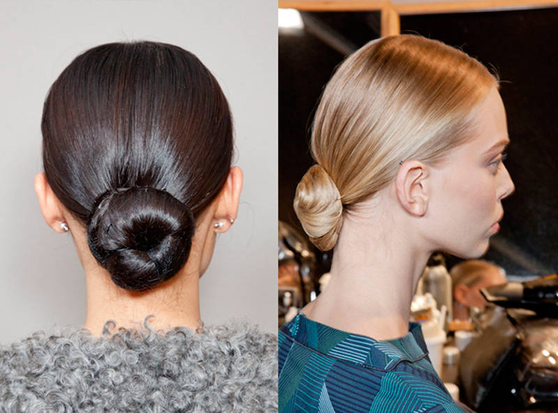 Не старайтесь ровно уложить волосы: пучок должен смотреться максимально естественно, ведь сейчас в моде натуральность. Можете выпустить несколько прядок у лица, чтобы прическа смотрелась гармоничнее.