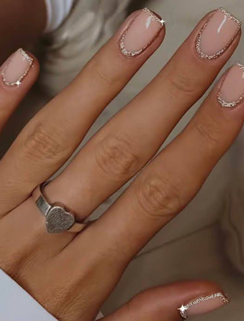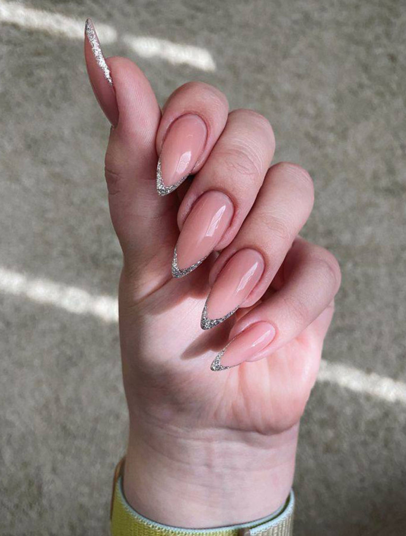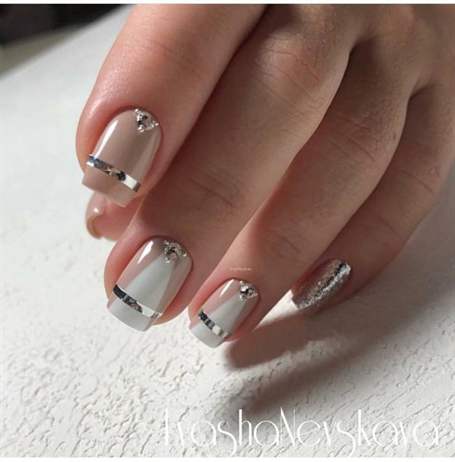 Минималистический трендовый дизайн маникюра 2023 с блестящим декором
