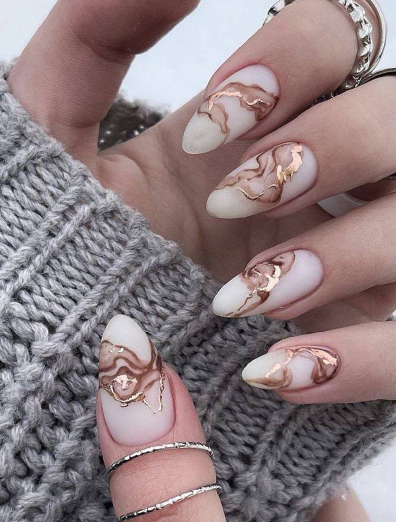 Оригинальный эффект, напоминающий узор мрамора, минерала или оттенки морской волны, не может не привлекать внимание к такому красивому дизайну на ногтях. Модный дизайн в стиле «текстуры» в 2023 году станет отличным способом дополнить свой однотонный маникюр, сделав его удивительным и особенным
