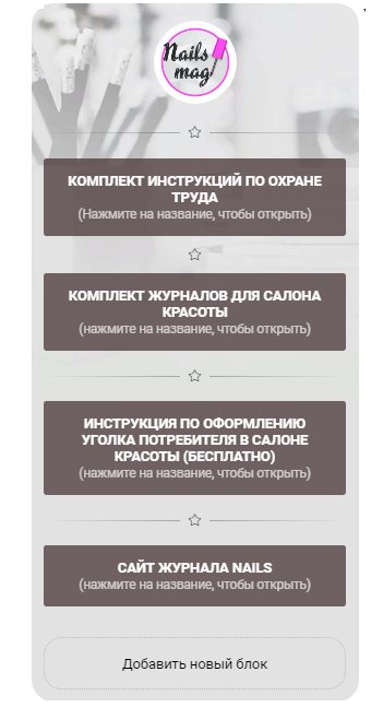 - Важные ссылки. Ссылка на страницу администратора, старшего мастера или сайта салона.