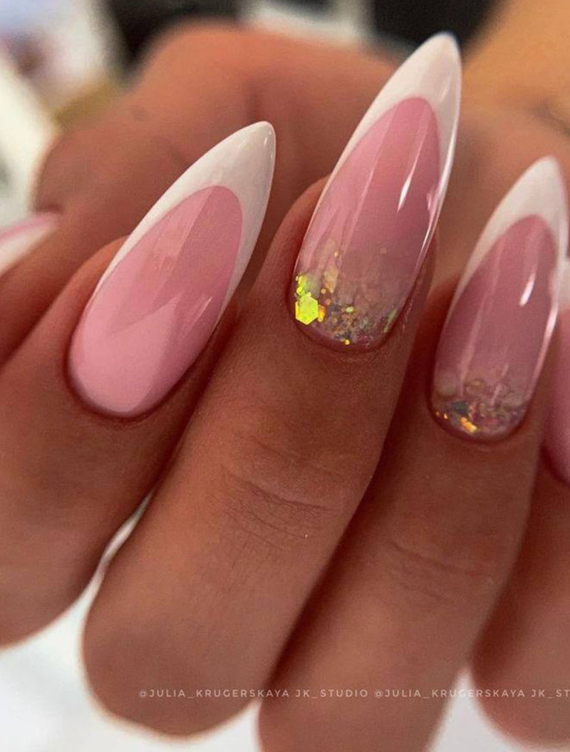 - французский маникюр с акцентом. Традиционный французский маникюр с белым кончиком ногтей стал более смелым и креативным. Теперь молодежь добавляет яркие цвета, глиттер или узоры на кончики ногтей, чтобы придать классическому стилю современный шик;