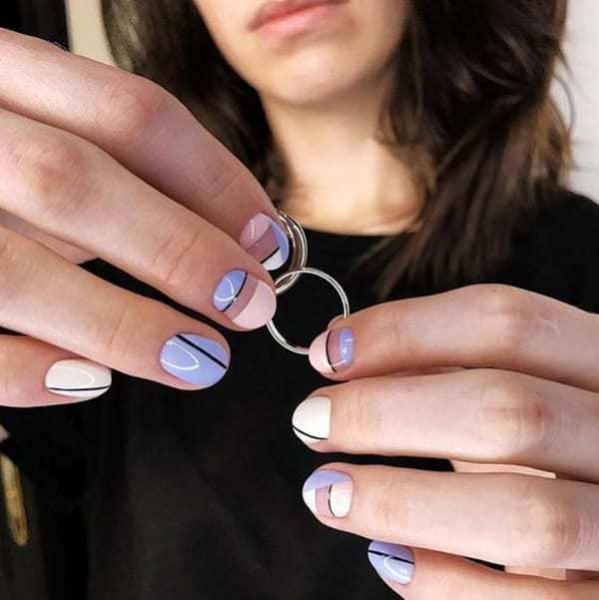 Чтобы сделать чуть более выразительный, но не слишком яркий маникюр, рекомендуем присмотреться к пастельным оттенкам. Это может быть голубой, желтый, лавандовый, розовый, мятный и другие. Они прекрасно сочетаются между собой, поэтому можно экспериментировать.