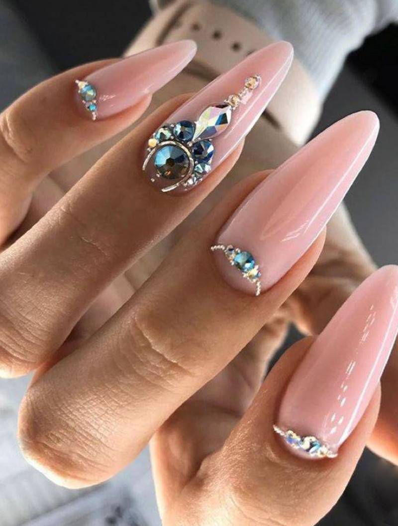 — Выкладка камнями — вот новый хит маникюра, заменивший стразы.Такой дизайн не оставит ногти не замеченными.