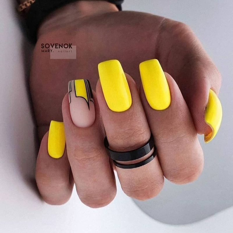 Классический красный, элегантный синий или непревзойденный «электрик» с матовым топом привлечет внимание к ногтям, а различные оттенки желтого, малинового, горчичного, золотого, бирюзового станут отличным вариантом для летнего праздничного маникюра 2023