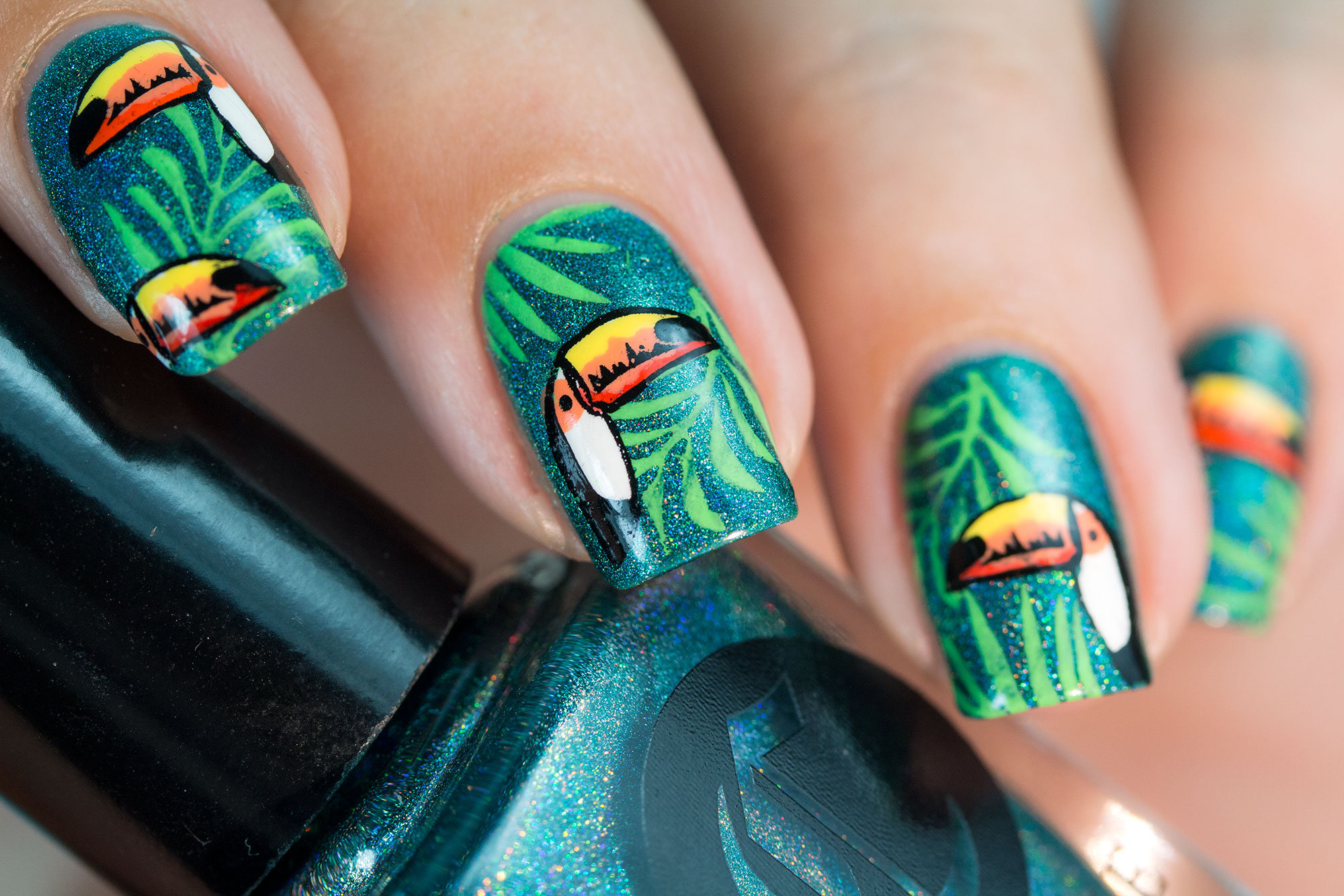 Для маникюра на море 2018 года уместно исполнение разнообразного декора. Для придания ноготкам шарма и блеска можно использовать всевозможные стразы и камни. Уместно смотрятся ракушки, рисунки морских обитателей, якоря, штурвалы, волны и пальмы. Также можно изобразить на ногтях бокалы с коктейлями, голографические рисунки и золотой глиттер. Все это сейчас относится к категории «ультрамодное». Если вы владеете техникой нанесения акриловой краски, ее также можно применить при создании трендового летнего маникюра для отпуска. Невероятно эффектно смотрится нейл-арт с УФ-лаками.