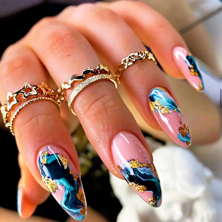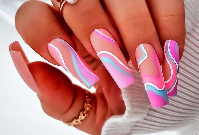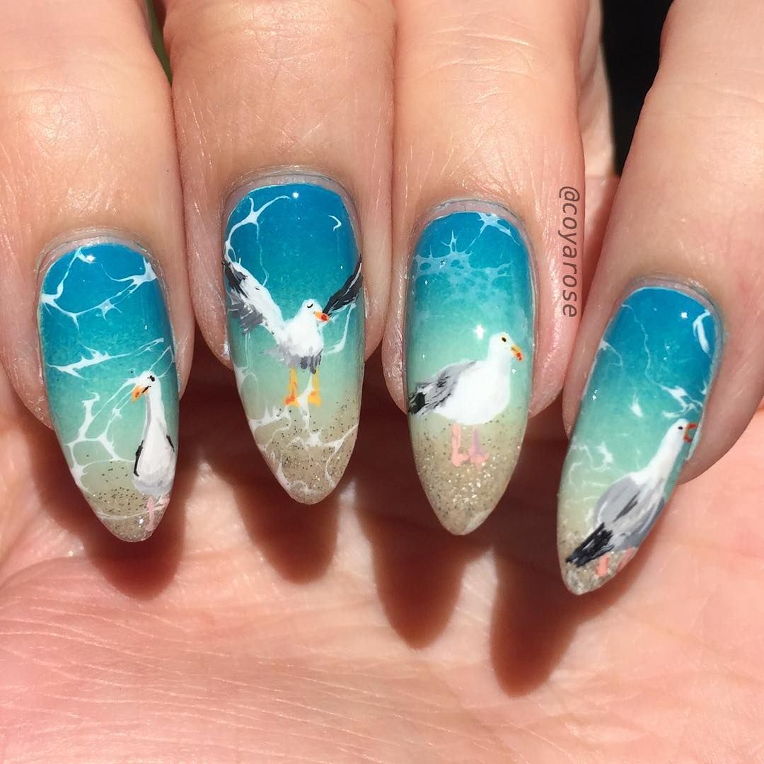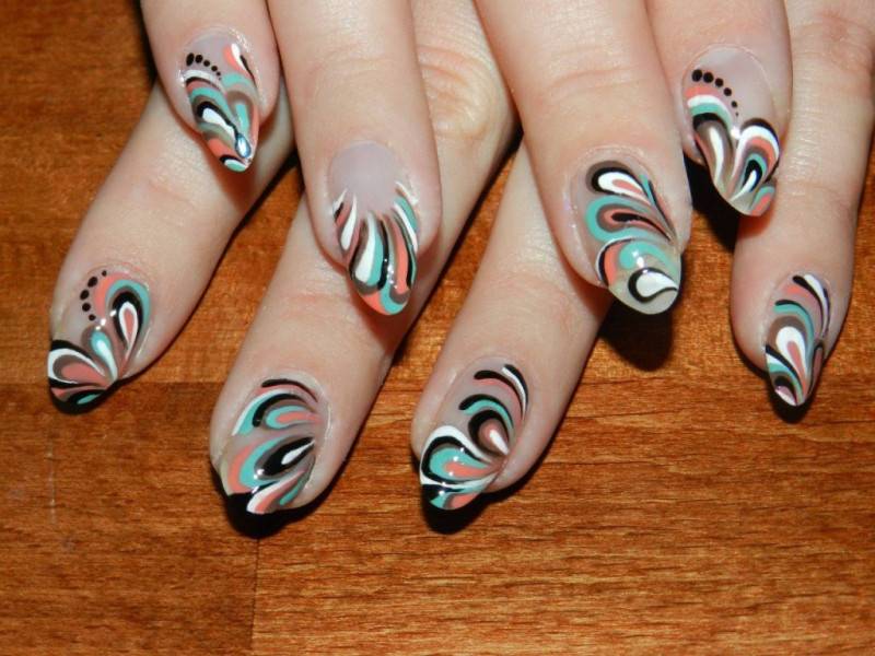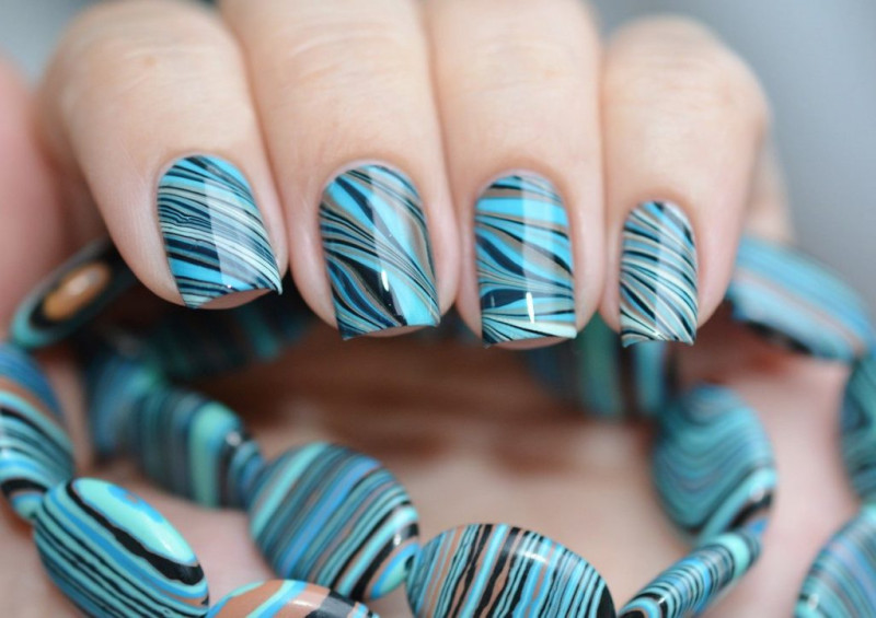 Океан также может быть красочным миром, для существ, живущих в нем, и поэтому маникюр с рисунками волн необычный и почти как настоящий.