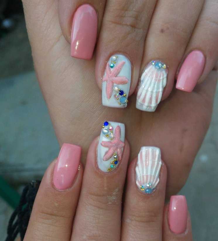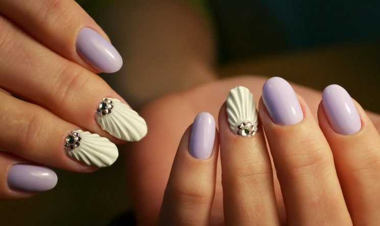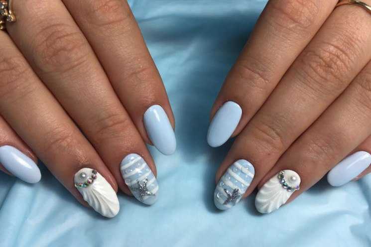 Маникюр с ракушками: интересный декор для любительниц моря
