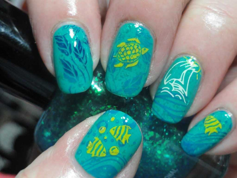 Он может быть превосходным дополнением морского маникюра, других дизайнов в бирюзовом, голубом, зеленом, золотистом, серебристом, желтом или оранжевом цвете. Необходимо, чтобы дизайн и декор были в одной теме.