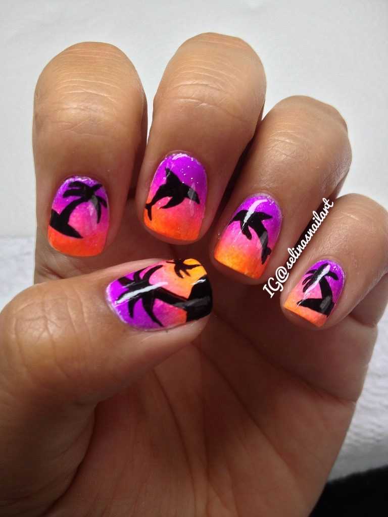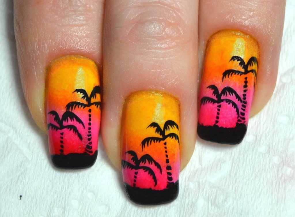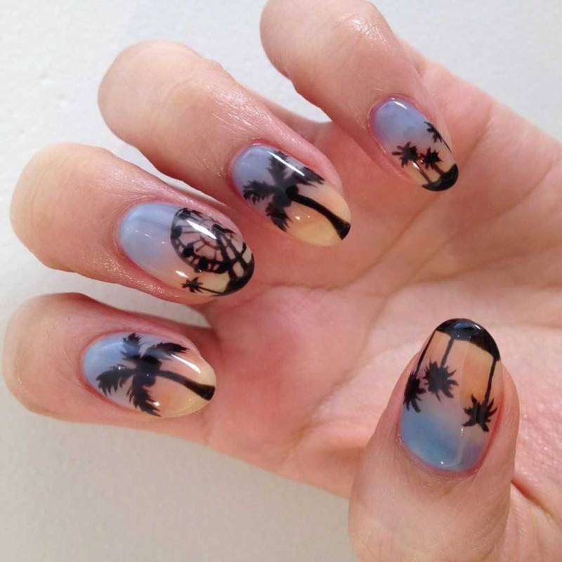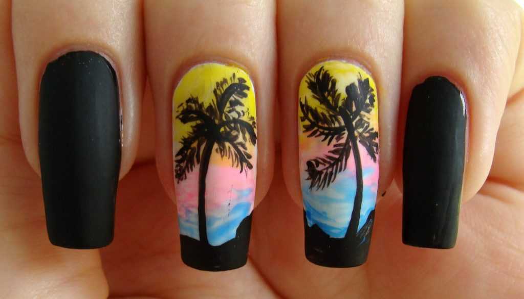 Сверху на голубом фоне можно нарисовать пальму. Невероятно эффектными они получаются на градиентном фоне.