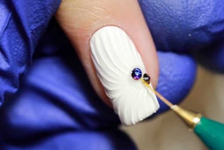 При помощи геля для моделирования можно сделать на ногтевой пластинке 3D-ракушку. Специальный гель густой, в отличие от основной базы, легко сохраняет форму, поэтому ракушка получается ребристая, очень похожая на настоящую. Текстуру наносят на предварительно подготовленный ноготь.