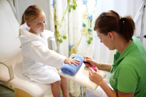 Если мама регулярно посещает маникюрный салон, она может взять с собой ребенка, и тогда вопрос, как делать маникюр для детей, у нее не возникнет. За нее процедуру проведут опытные мастера. Но, как уже упоминалось выше, ногти у детей отрастают быстрее, чем у взрослых.