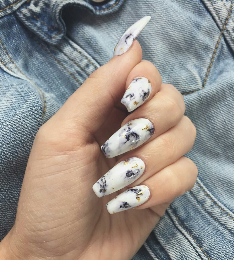 Модный длинный маникюр с мраморным рисунком: идеи 2022-2023
