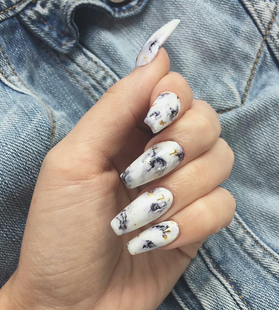Модный длинный маникюр с мраморным рисунком: идеи 2022-2023
