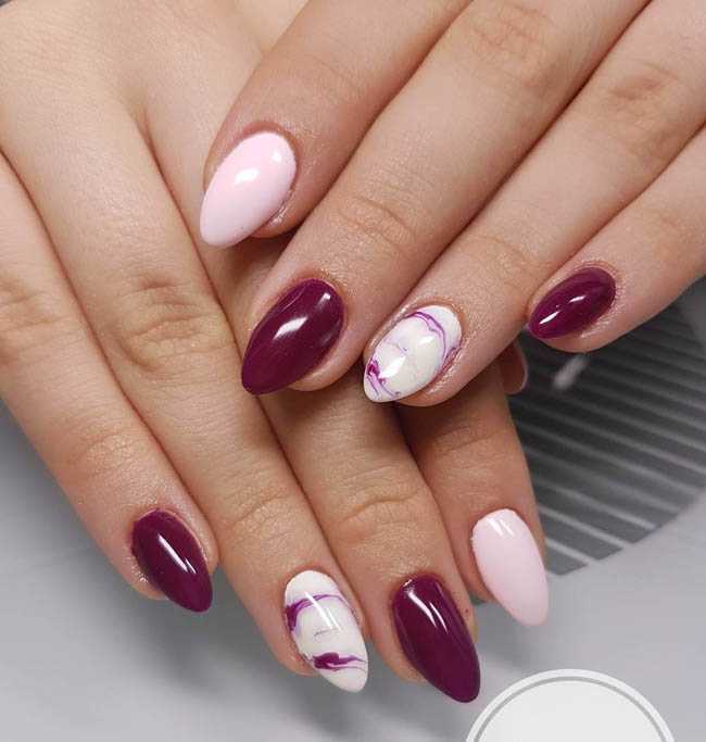- Уникальность рисунка: каждый мраморный маникюр неповторим.